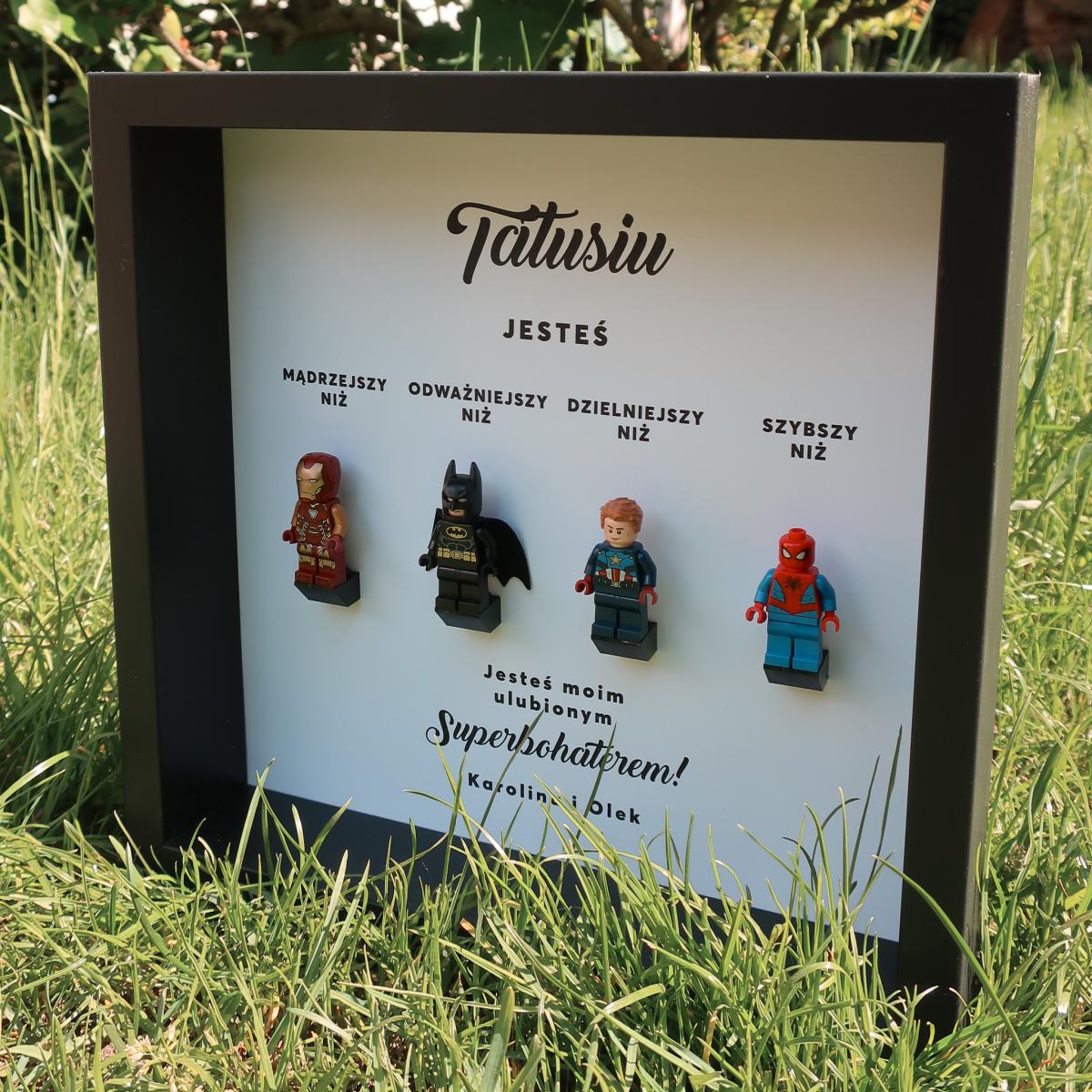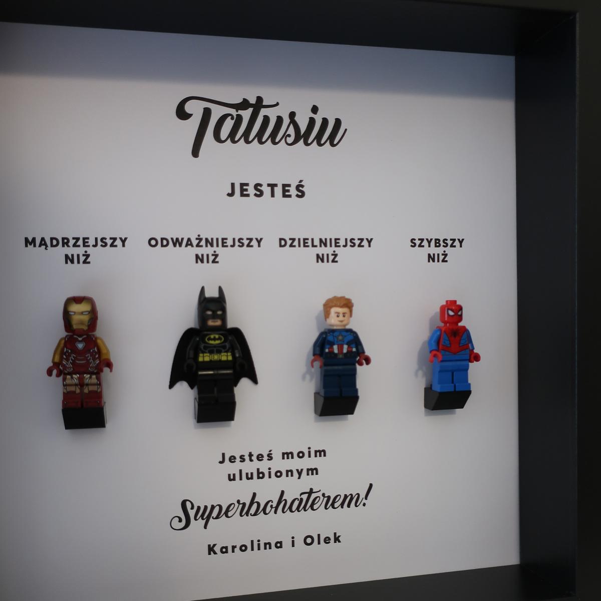 Ramka zawiera figurki Lego superbohaterów. Do wyboru figurki w kilku wariantach. Figurki mogą różnić się od tych przedstawionych na zdjęciach, jednak prezentują zawsze wybranych bohaterów.