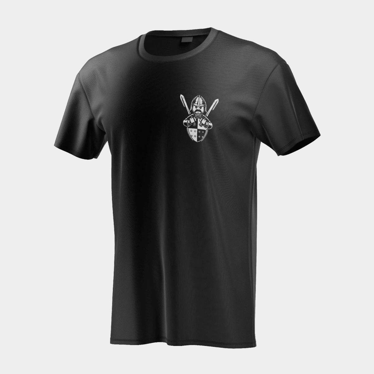 Koszulka jest czarna, a nadruki wykonane zostały w kontrastowym białym kolorze. Z przodu znajduje się niewielka grafika na piersi – rycerz z mieczami. Na plecach umieszczono dużą, szczegółową ilustrację z całym rycerskim motywem.