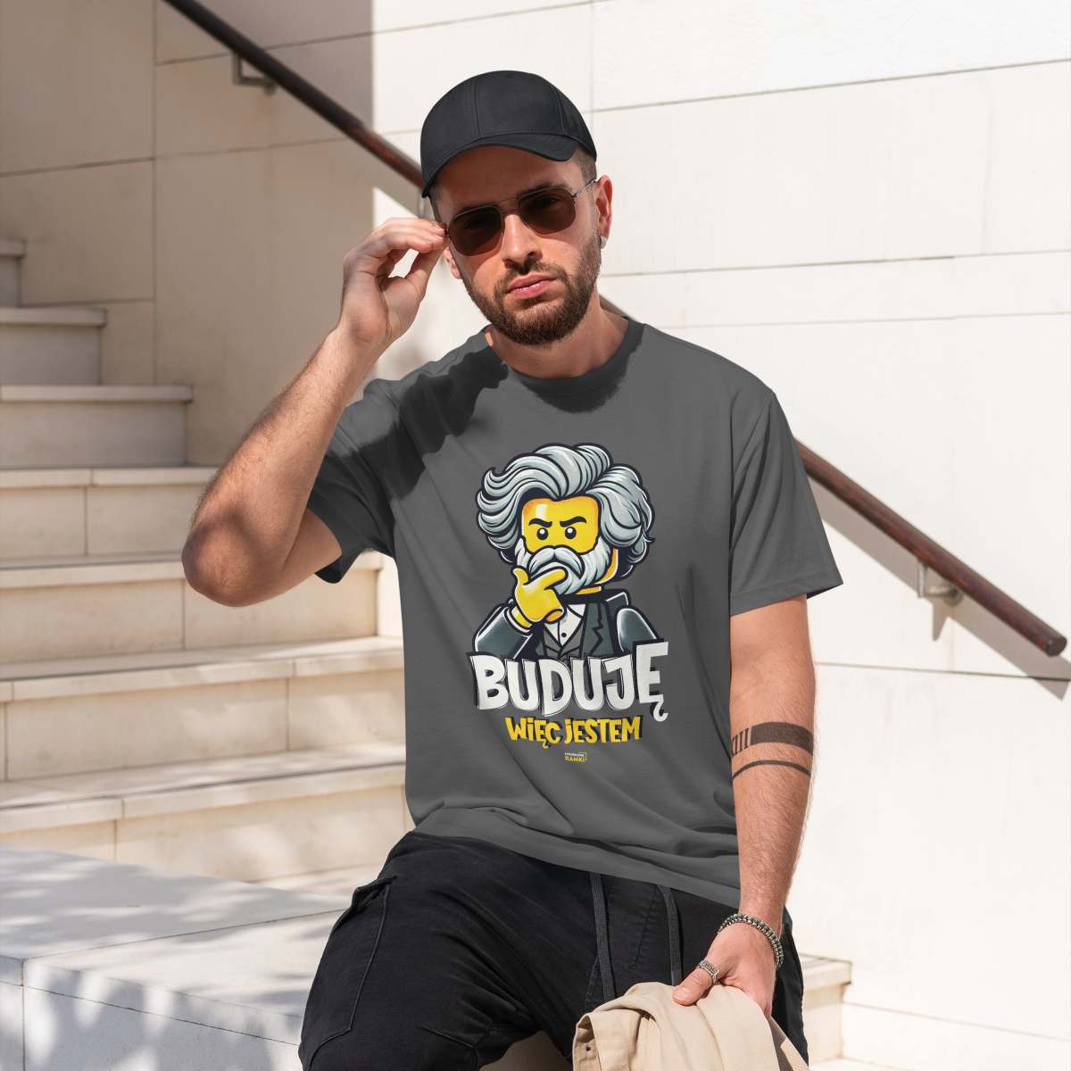 Koszulka „Buduję, więc jestem” – must-have dla fanów klocków LEGO! Idealna dla każdego, kto kocha budować – niezależnie od wieku! Wygodna, stylowa i dostępna w różnych rozmiarach, ta koszulka to świetny sposób na pokazanie swojej pasji do klocków LEGO.