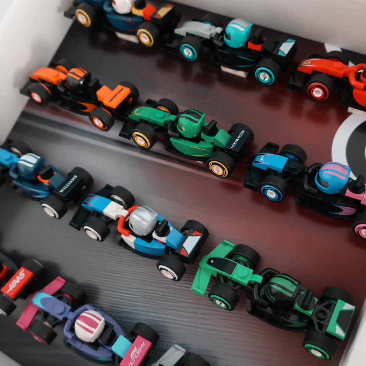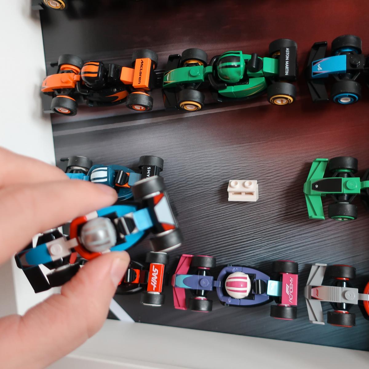 W ramce zmieścisz wszystkie 12 bolidów z tej serii, a dedykowane klocki ekspozycyjne pozwolą ustawić je klasycznie lub pod skosem – jak na prawdziwej prezentacji teamów F1. To propozycja dla kolekcjonerów, którzy cenią czysty, kolekcjonerski styl i chcą jak najlepiej wyeksponować swoje zbiory.