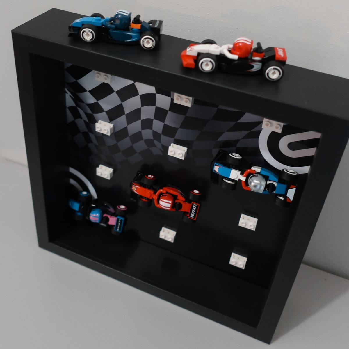 Ramka przeznaczona do bolidów z serii Lego 71049 F1 Collectible Race Cars. Mieści 12 bolidów z kolekcji.