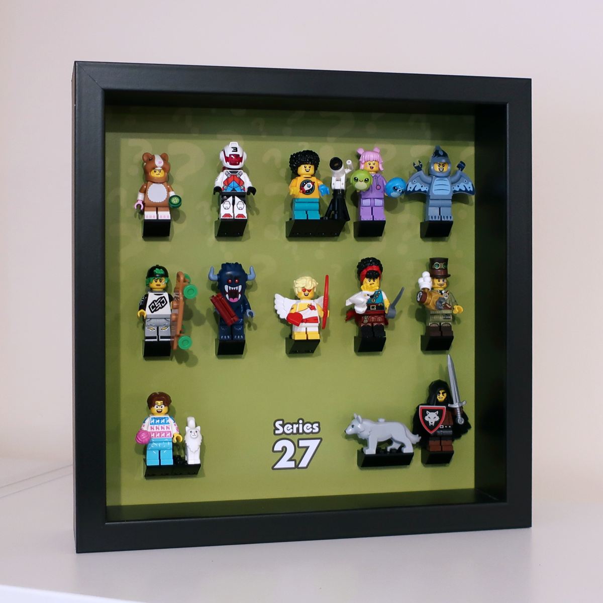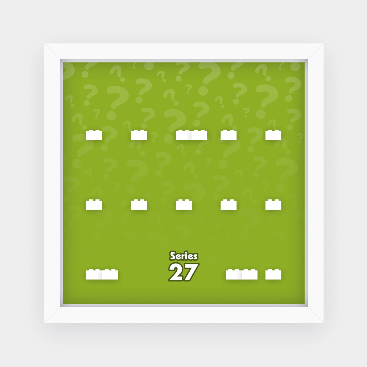 Ramka przeznaczona do figurek z serii Lego 71048 Minifigures (Series 27). Mieści 12 figurek z kolekcji. Specjalnie zaprojektowane tło odwołuje się do kolorów tej serii.