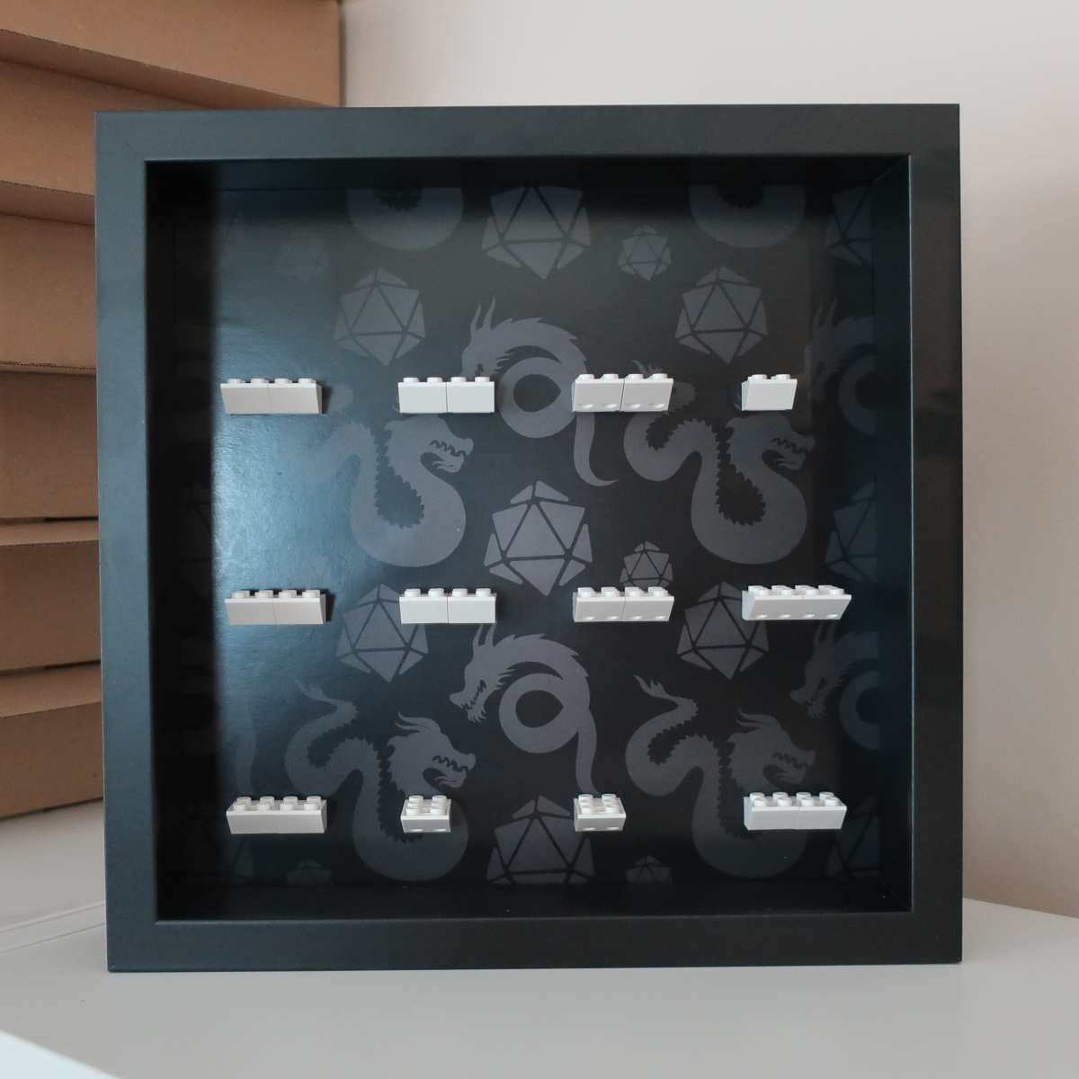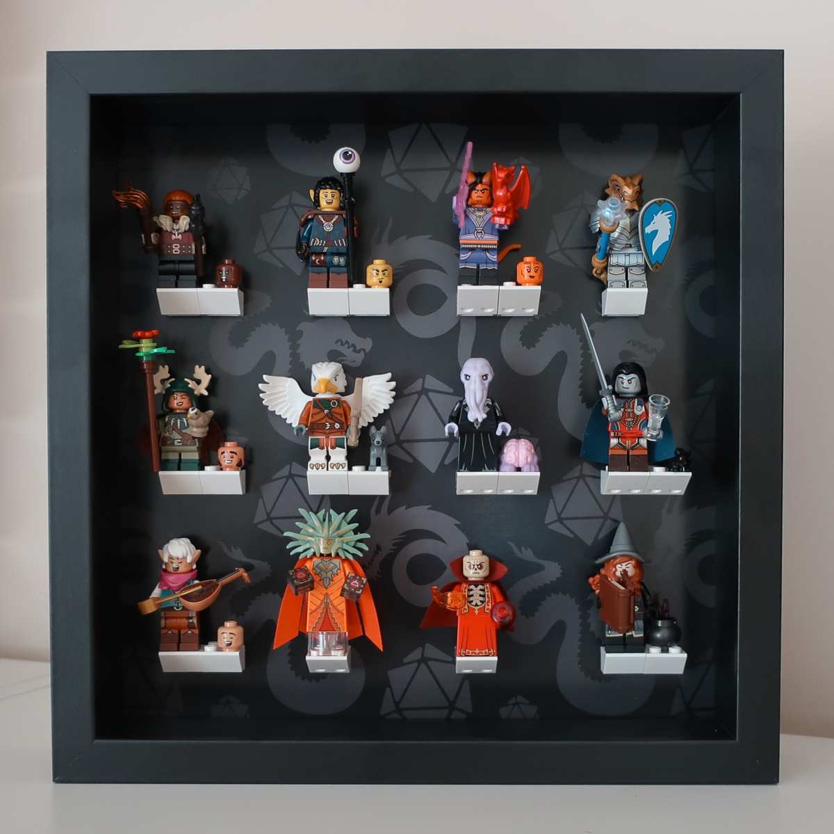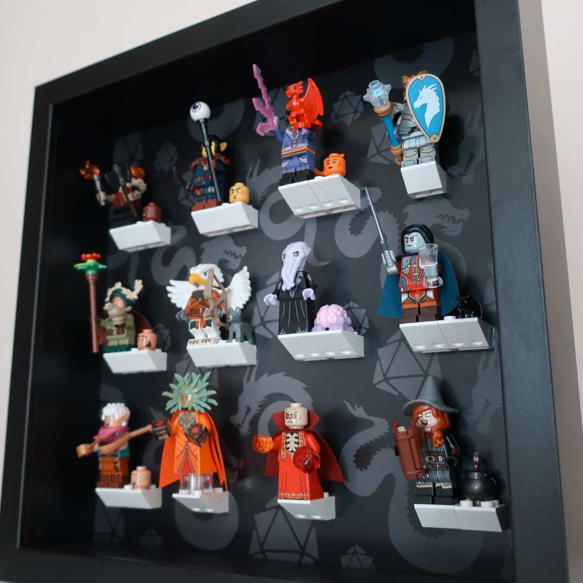 Ramka przeznaczona do figurek z serii Lego 71047 Minifigures (Dungeons & Dragons Series). Mieści 12 figurek z kolekcji. Specjalnie zaprojektowane tło odwołuje się do motywu tej serii.