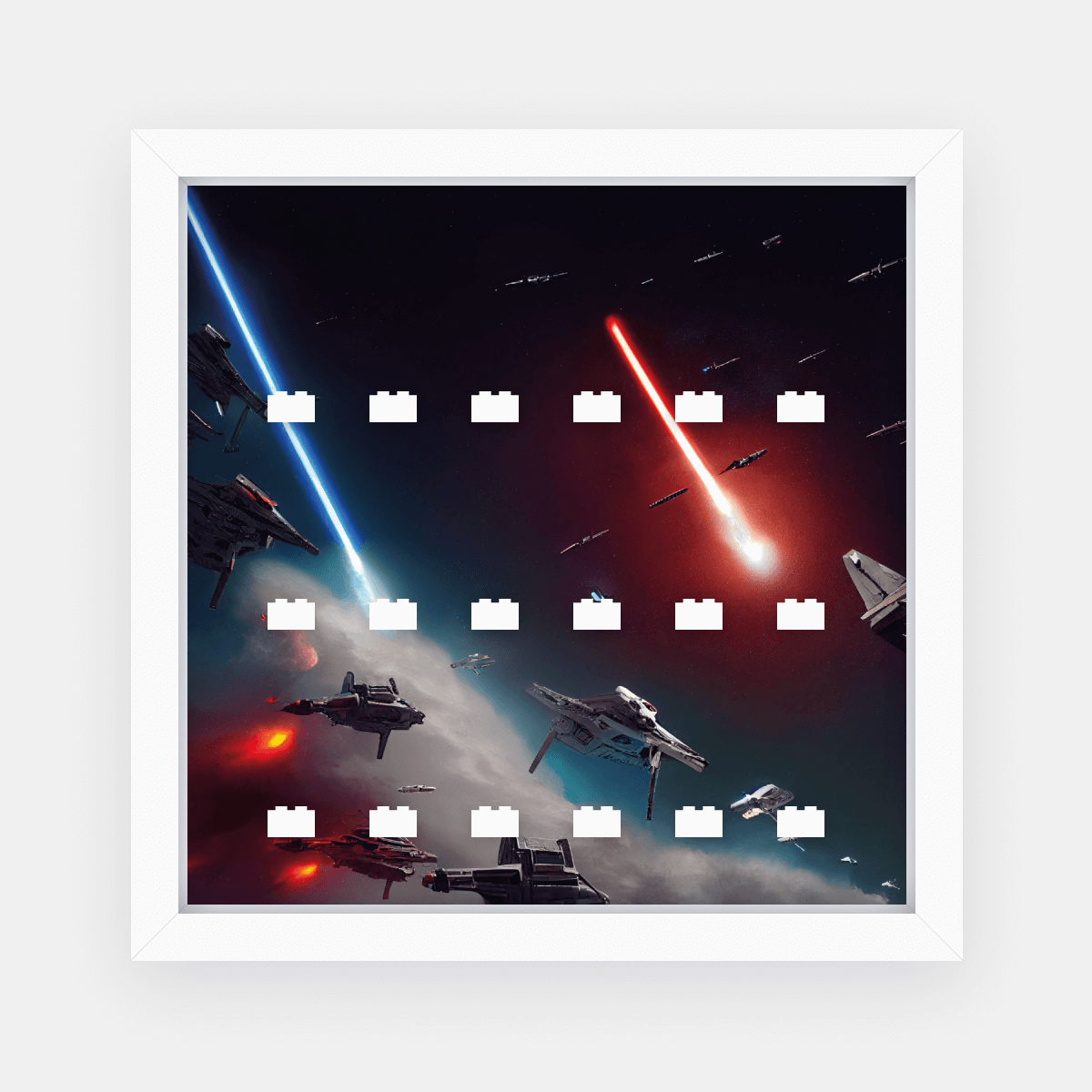 Ramka przeznaczona do figurek związanych z serią Lego Star Wars. Mieści 18 figurek. Specjalnie zaprojektowane tło odwołuje się do motywu Star Wars.