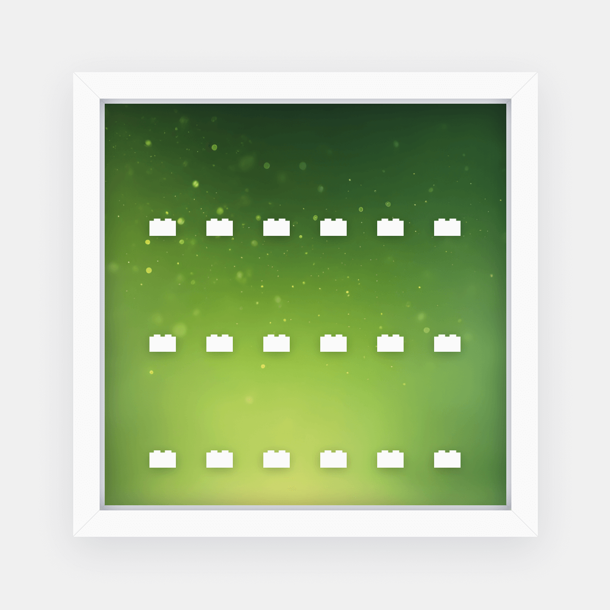 Ramka na minifigurki z klocków LEGO z uniwersalnym tłem „Leśny blask” to elegancki sposób na zaprezentowanie swojej kolekcji. Mieści 18 figurek, zapewniając im bezpieczne i efektowne miejsce ekspozycji.