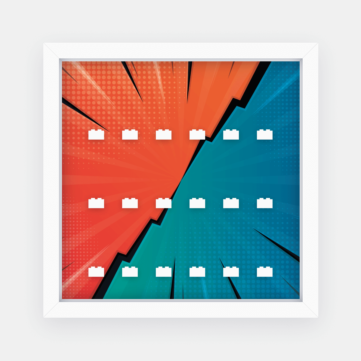 Ramka na minifigurki z klocków LEGO z tłem „Starcie bohaterów” to efektowny sposób na zaprezentowanie swojej kolekcji – niezależnie od tego, czy zbierasz całe serie, czy po prostu posiadasz ulubione, różnorodne figurki. Mieści 18 figurek, które będą bezpiecznie i estetycznie wyeksponowane.