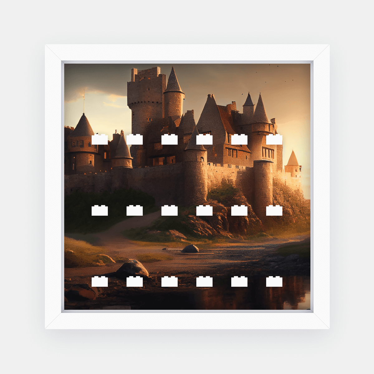 „Warowny gród” nadaje się do odważnych aranżacji – w ramce możesz ustawić rycerzy, czarodziejów, bohaterów gier czy filmów, ale też zupełnie nieoczywiste postacie, tworząc własną, alternatywną historię. Tło jest na tyle uniwersalne, że każda minifigurka zyska w tej ramce wyjątkowe miejsce.